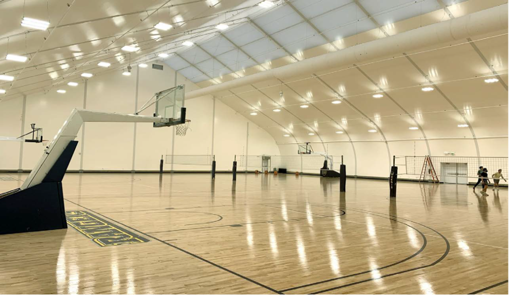 - Reach your net zero targets – more and more schools are committing to cutting their carbon emissions to zero by 2030. With a BREEAM rating of Excellent, Paragon’s buildings benefit from outstanding environmental performance. The structures are tensioned both inside and out to create a virtually airtight building. Indeed, Paragon’s airtightness performance approaches Passivhaus levels – the gold standard of energy efficient design – helping schools to save energy and cut carbon emissions. The structures meet June 2022 building regulations regarding thermal efficiency and U-values. High specification fibreglass insulation in the walls and roof of the building ensure better climate control, while absorbing sound and reverberation for great acoustics – a rarity in school sports buildings. Plus, the roofs of the buildings are the ideal pitch for solar panels and, by installing Paragon’s specialist solar panel system, schools can generate electricity and save more on their energy bills.